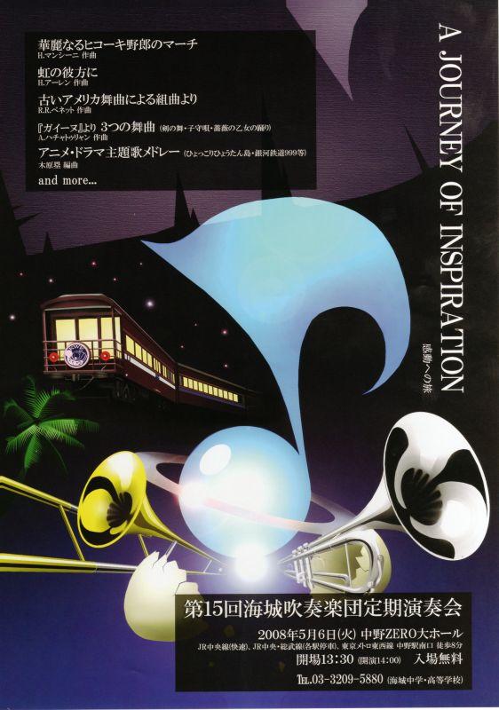 第15回海城吹奏楽団定期演奏会が5月6日(振替休日)に,なかのZERO大ホール(JR中野駅南口から徒歩8分)で行われます。午後1時半開場・午後2時開演で,入場無料です。